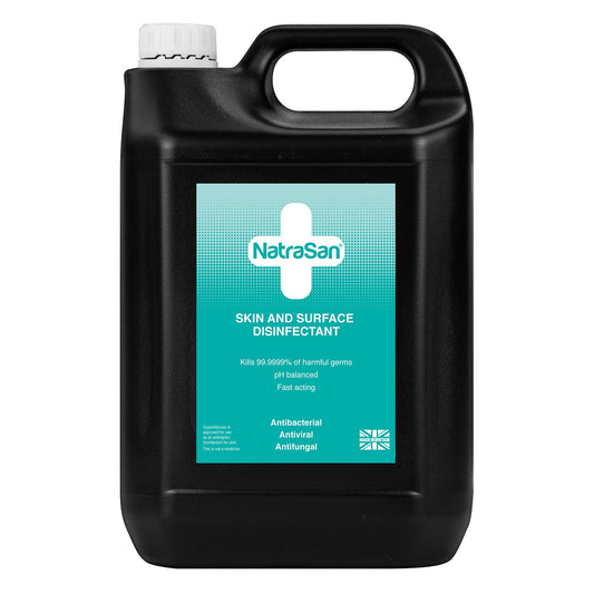 Touch Free Automatic Sanitising Dispenser - Wall Mounted - Includes NatraSan Skin and Surface Disinfectant (5 Litre)